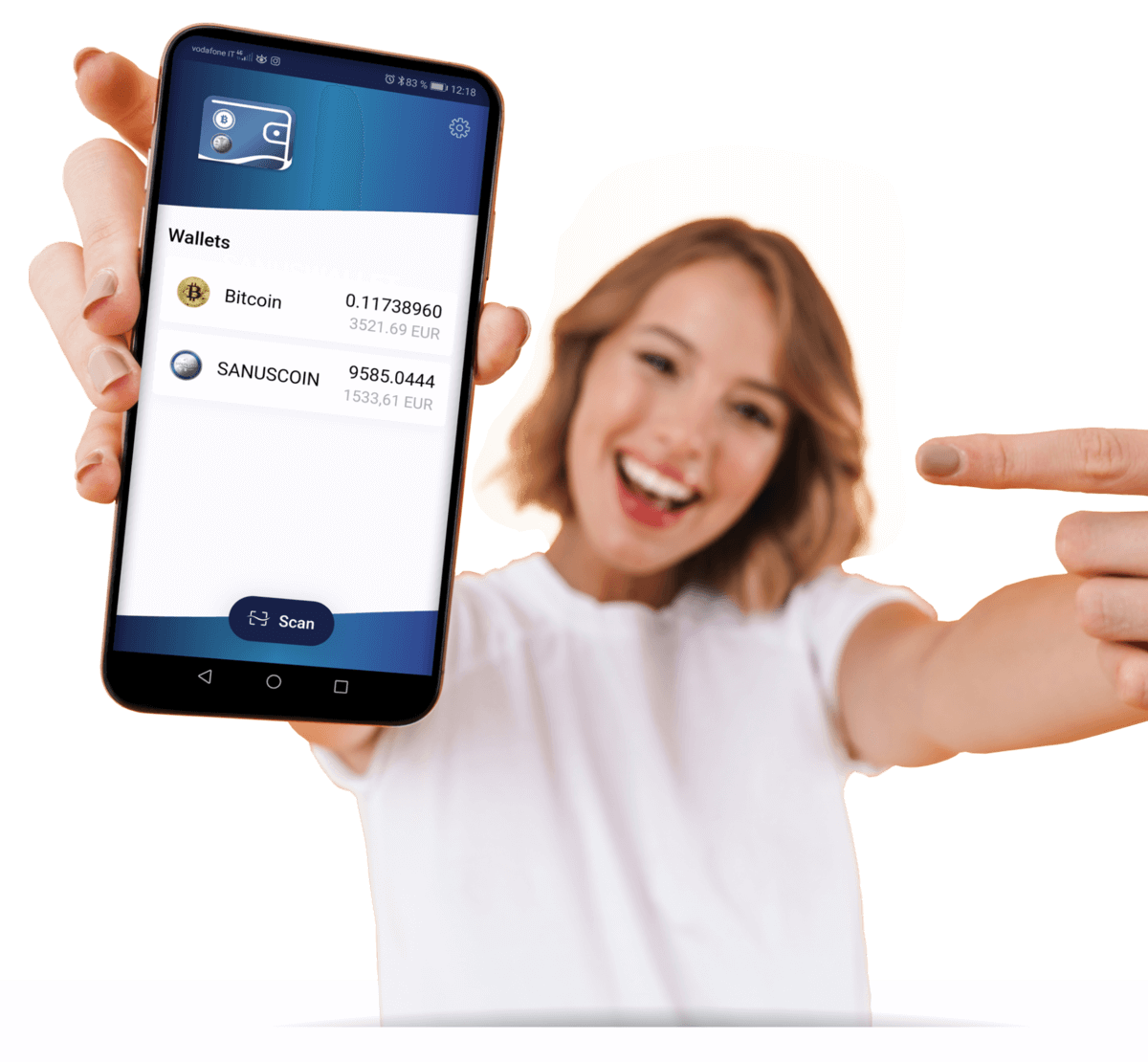 Speichere deine SANUSCOINS mit einem Klick auf der Bitcoin-Blockchain ab. Einfach in der SANUSLIFE App das dezentrale SANUSWALLET mit deinem Konto verknüpfen. Fertig!